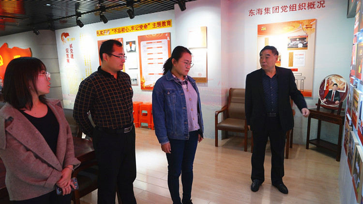 調研指導組一行首先參觀了東海集團黨員活動室,隨后,聽取主題教育工作開展情況匯報,并就有關問題與企業進行交流,詳細了解非公企業黨組織在主題教育工作中采取的方式、取得的成效、存在的問題,同時對下一步開展好主題教育工作提出了指導性意見。調研指導組還對非公企業流動黨員管理、黨日活動和黨建工作經費落實等問題進行了解,黨委書記蘇振水對各項工作開展情況作了詳細解答。調研指導組對東海集團高度重視黨建工作、以黨建引領發展的做法給予高度評價。